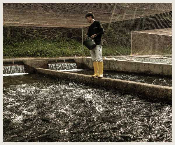 厳選された発眼卵を導入し、水温・水質管理のもとで孵化・初期給餌を開始。 掛け流し式の清流により、酸素豊富な環境で健やかに成長。